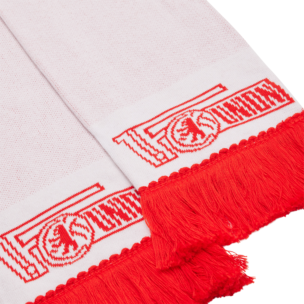 - High-quality fan scarf in white/red