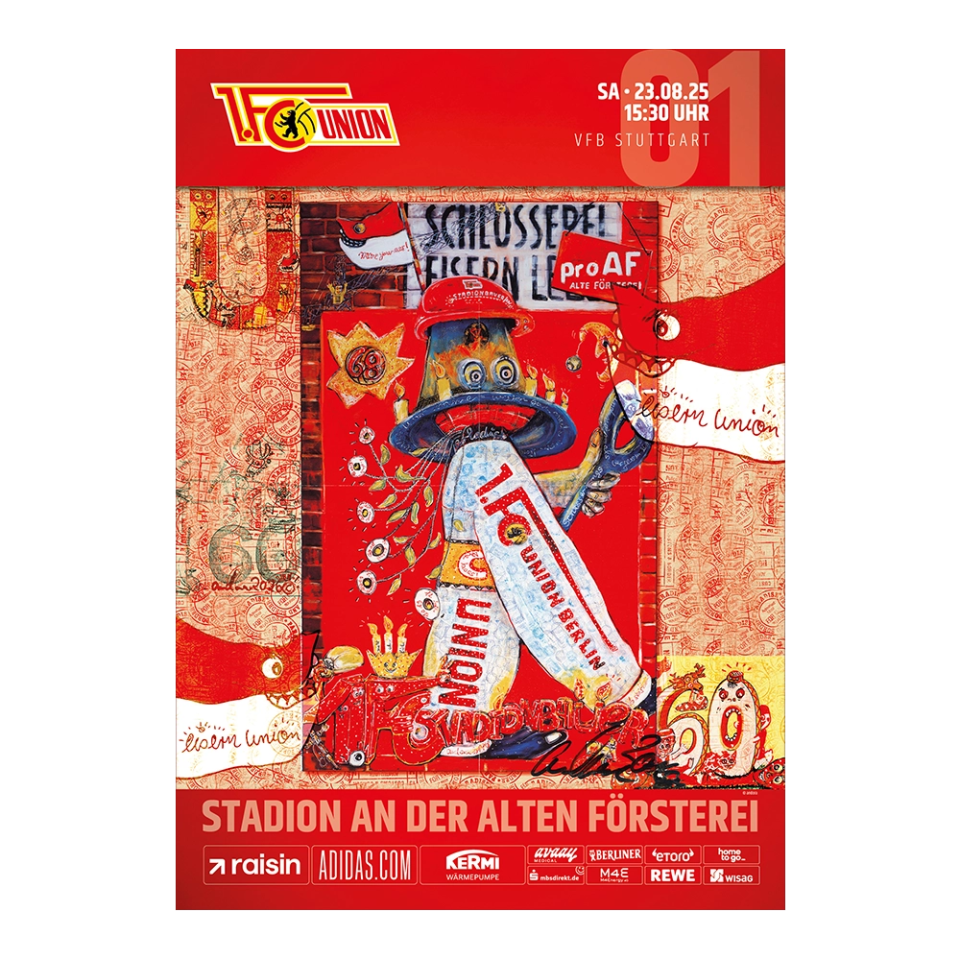 Die siebte Bundesliga-Saison der Profimannschaft der Männer des 1. FC Union Berlin beschert den Feingeistern unter den Unionern ganz besondere Erinnerungsstücke: 17 liebevoll gestaltete Spieltagsplakate aus den Händen von 17 verschiedenen Künstlern lassen die Heimspiele der Eisernen zum Kunstgenuss werden.