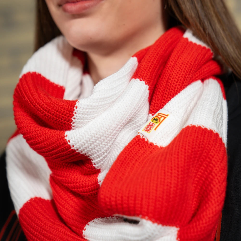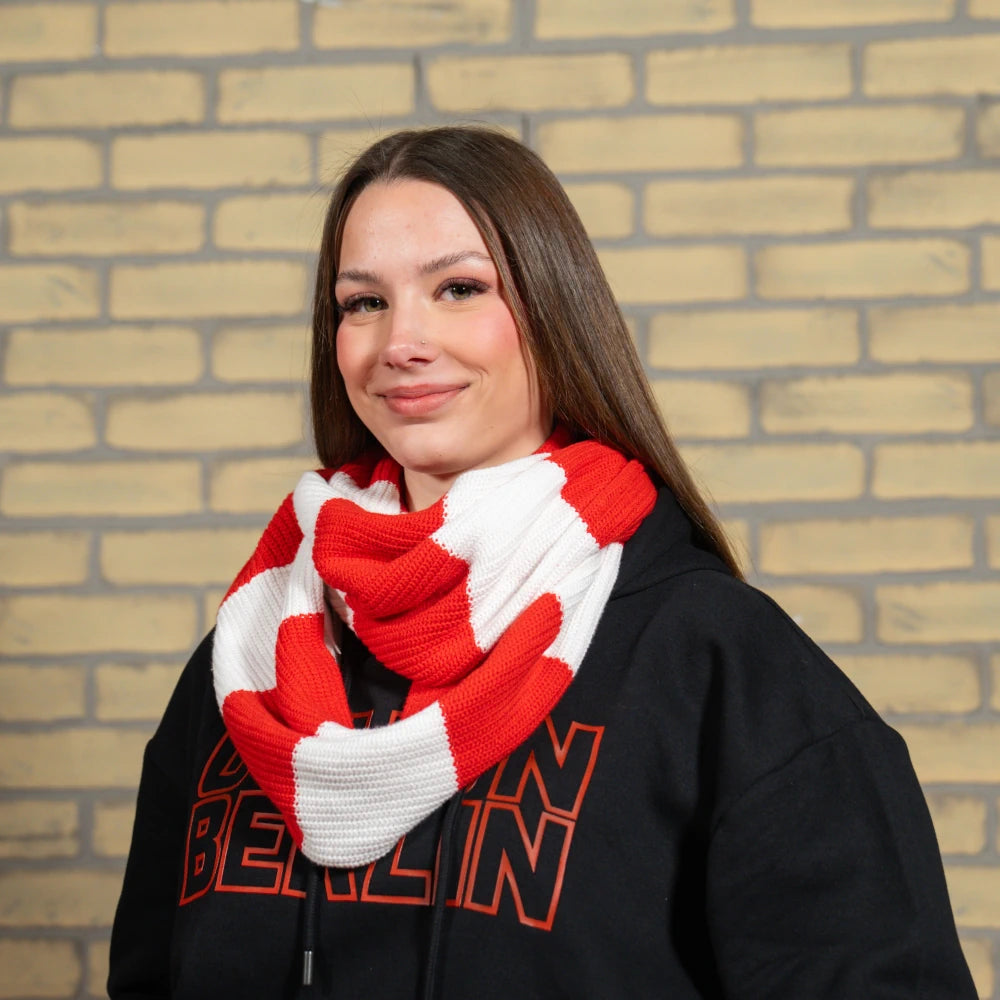 - Rot-weiß gestreifter Loop Schal